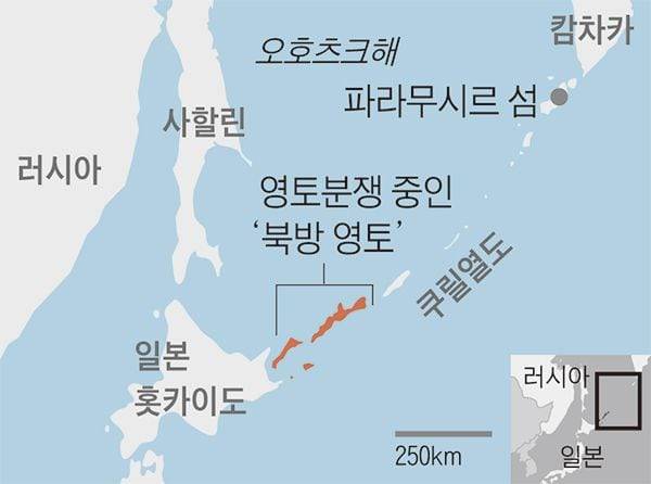 일본에도 러시아의 쿠릴열도 방어 미사일 배치는 껄끄러운 이슈다. 쿠릴열도는 러시아의 캄차카반도와 일본 홋카이도 사이에 길게 이어진 섬들로, 오호츠크해와 태평양을 잇는 군사적 요충지다. 총 25개 섬이 있는데, 러시아는 모든 섬을 쿠릴 열도로 간주하고 실효 지배하고 있다. 반면 일본은 홋카이도에 가까운 4개 섬은 쿠릴열도가 아니란 입장이다. 이를 ‘북방 영토’라고 부르며 자국 영토라고 주장하고 있다.