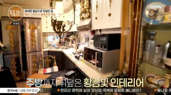 유명 패션 디자이너로 이름을 알린 황재근답게 집도 화려하고 특이했다. 집 안에 들어서자 궁전 느낌을 줄 정도로 앤티그한 금색 장식구로 뒤덮여있었다.