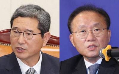 국민의힘이 다음달 7일 주호영 원내대표를 이을 새 원내대표를 선출하기로 23일 결정했다. 1961년생 동갑내기인 김학용(4선·왼쪽 사진), 윤재옥(3선·오른쪽) 의원의 치열한 2파전이 예상된다. 국민의힘은 이날 신임 정책위의장에 박대출 의원을 임명했다.