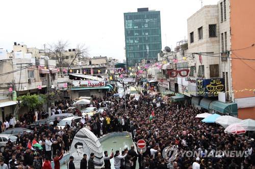 epa10538705 Mourners carry the body of Ameer abu Khadija (R) during his funeral in the West Bank city of Tulkarem, 23 March 2023. According to the Palestinian Health Ministry, 25-year-old Palestinian Abu Khadija died from gun shots to the head and legs during an Israeli army raid near the West Bank town of Tulkarem. According to the Israeli military, the man was wanted over recent shooting attacks on Israeli settlements. EPA/ALAA BADARNEH 10953
