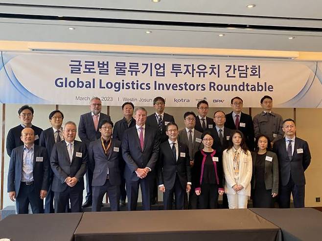 부산진해경제자유구역청(청장 김기영)은 23일 서울에서 KOTRA(사장 유정열), 부산항만공사(사장 강준석)와 공동으로 '글로벌 물류기업 투자유치 간담회'를 개최했다.