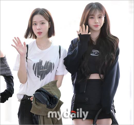 [마이데일리 = 인천 한혁승 기자] 그룹 에스파 윈터(왼쪽), 카리나가 24일 오전 인천공항을 통해 'Sound Check Festival 2023' 공연 참석 차 태국 방콕으로 출국했다.- ⓒ마이데일리(www.mydaily.co.kr). 무단전재&재배포 금지 -