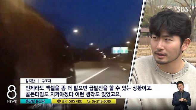 김 씨는 지난 9일 SBS 인터뷰를 통해 "언제라도 액셀을 좀 더 밟으면 급하게 발진을 할 수 있는 상황이고, 골든타임도 지켜야겠다는 생각도 있었다"며 "사실 제가 일하고 있는 분야가 자동차 안전 관련 분야라서 조금 더 의미 있었던 것 같다"라고 말했습니다.
