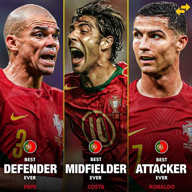 한편, 포르투갈은 페페, 루이스 피구, 크리스티아누 호날두가 조합을 이뤘고 잉글랜드는 바비 무어, 스티븐 제라드 바비 찰튼이 이름을 올렸다.