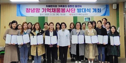 창녕군은 지난 23일 보건소 소회의실에서 치매안심센터장, 창녕맘 기억채움봉사단 등 22여명이 참여한 가운데 '창녕맘 기억채움봉사단 발대식'을 개최했다.