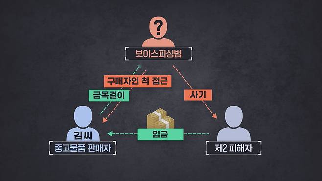 사기범이 전화금융사기 피해자와 중고 물품 판매자, 이 둘 사이에서 물건만 가로채 사라지는 겁니다.