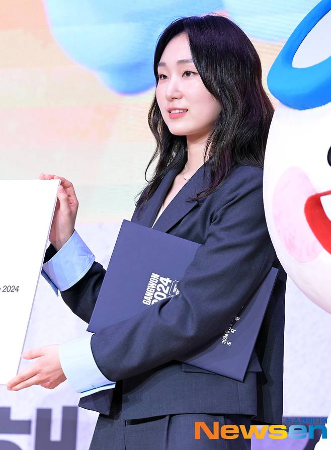 홍보대사 최민정이 3월 24일 오후 서울 송파구 올림픽파크텔 올림피아홀에서 열린 G-300일 계기 '2024 강원동계청소년올림픽대회 홍보대사 및 문화행사 감독&자문단 위촉식'에 참석해 기념촬영을 하고 있다.