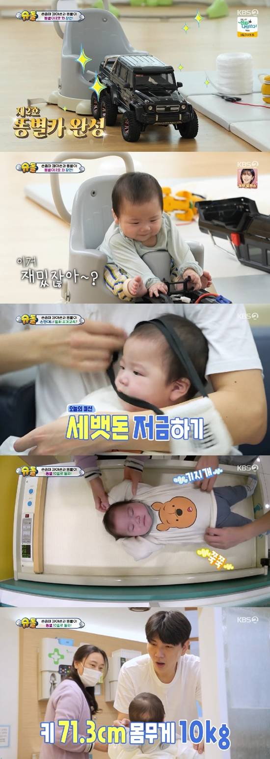 제이쓴은 똥별이를 안고 은행을 찾았다. 그는 "요새는 아이들이 카드에서 돈이 나오는 줄 알더라. 경제 교육을 미리 해두면 좋지 않을까 싶다"며 만2세 똥별이의 조기교육에 나선 이유를 밝혔다.