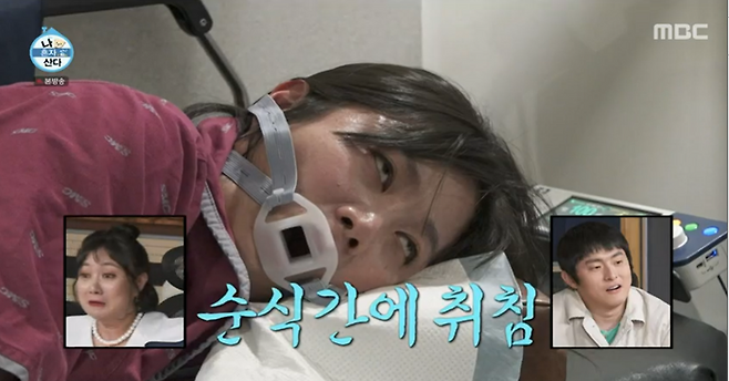이어진 다음 차례는 전현무였다. 마취 전 전현무는 “잠이 안 들까 봐 걱정된다”고 허세를 떨었다. 하지만 주사액이 들어가자 1초 만에 코를 골기 시작한 전현무는 침 흘리며 깊은 잠에 빠졌다. 별다른 말없이 잘 마쳤다.