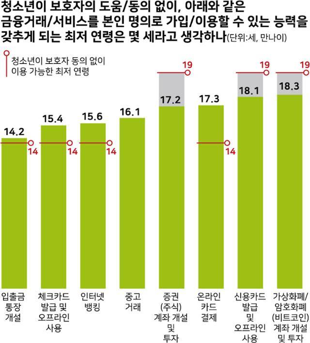 보호자의 도움 없이 금융생활 가능하다고 보는 나이, 법 기준보다 높아