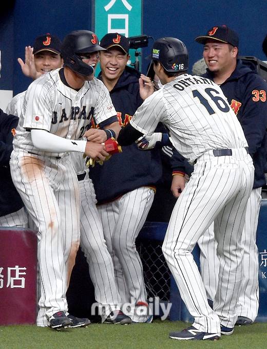 [오타니가 6일 오후 일본 오사카 교세라돔에서 진행된 WBC 일본 대표팀과 한신 타이거스의 경기에서 3회말 2사 1.2루서 3점 홈런을 친 뒤 눗바와 세리머니를 하고 있다. 사진 = 유진형 기자 zolong@mydaily.co.kr]- ⓒ마이데일리(www.mydaily.co.kr). 무단전재&재배포 금지 -