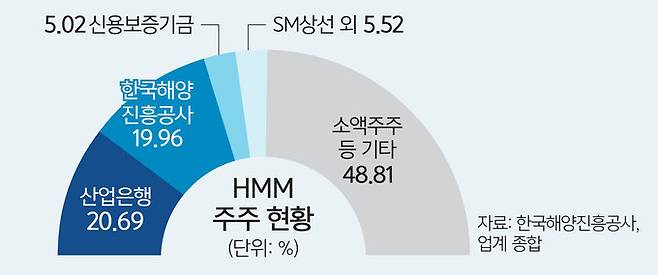 24일 해운업계 등에 따르면 산업은행은 최근 한국해양진흥공사(해진공)와 함께 HMM 경영권 매각 관련 용역 수행기관 선정 절차에 공동으로 착수했다. 산업은행과 해진공은 각각 HMM의 지분 20.7%, 19.6%씩을 보유한 1·2대 주주다.