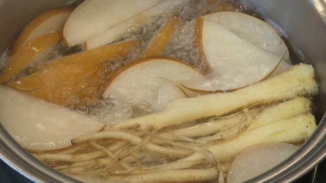 게다가 배의 단맛이 도라지의 쓴맛을 중화시키기 때문에 차로 만들어 먹었을 때 어른 아이 할 것 없이 마시기에 좋습니다.