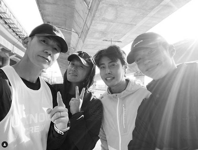 사진 속에는 션과 배우 진태현, 장호준 선수와 배우 박보검이 러닝 후 인증샷을 남겼다.