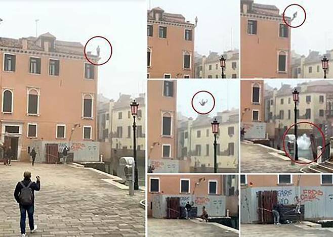 이탈리아 안사(ANSA) 통신에 따르면 최근 온라인에선 건물 옥상에서 운하를 향해 다이빙하는 한 남성의 동영상이 크게 화제가 되고 있습니다.