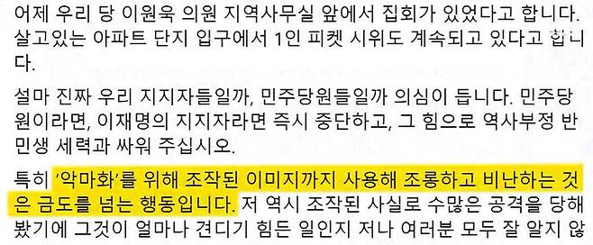 민주당 비 이재명계 이원욱 의원이 올린 SNS 글입니다.