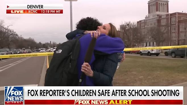 아들이 재학 중인 고등학교에서 일어난 총격 사건을 보도하던 리포터가 생방송 도중 총격을 피한 아들을 발견하고 안도의 포옹을 하는 장면이 화면에 잡혔습니다.