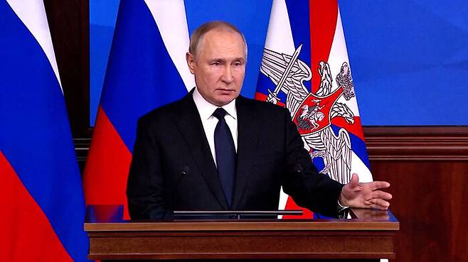 블라디미르 푸틴 러시아 대통령이 한 달 만에 다시 핵무기 카드로 엄포를 놓았습니다.