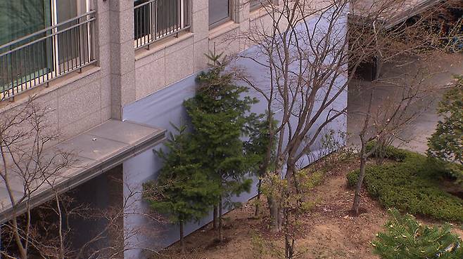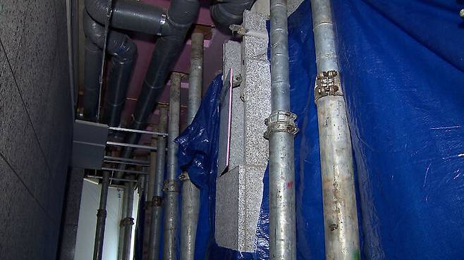 이틀 뒤, 현장을 직접 찾아가 봤습니다. 균열이 발생한 벽은 가림막으로 가려져 있었고, 혹시 모를 추가 붕괴에 대비해 10개가 넘는 지지대가 곳곳에 설치돼 있었습니다.