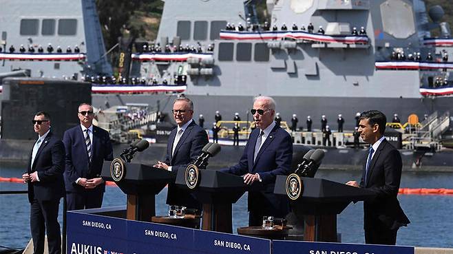 지난 13일, 미국과 영국, 호주 세 나라 정상이 미국 캘리포니아 샌디에이고에서 공동 기자회견을 열고 당초 2040년으로 논의했던 호주의 핵추진 잠수함 확보 시점을 앞당기겠다고 밝혔습니다. 즉, 2030년대 초까지 미국은 호주에 버지니아급 핵추진 잠수함을 최대 5척 판매하고, 이와 더불어 호주와 영국에서 신형 잠수함을 건조해 호주에 인도하겠다는 겁니다. 지난 2021년 이들 세 나라가 결성한 안보협의체, 오커스 (AUKUS) 차원에서 추진되는 것으로, 앞서 세 나라는 2040년까지 호주가 핵잠수함 8척을 보유하도록 한다고 합의한 바 있습니다. 이를 10년이나 앞당긴 것은 그만큼 인도-태평양 지역에서 중국의 위협이 높아졌다는 방증일 수 있습니다.