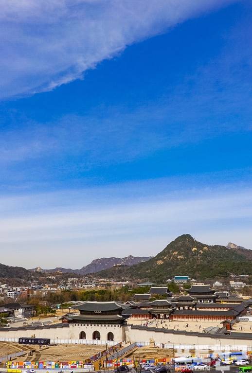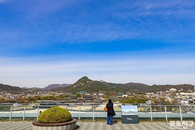 대한민국역사박물관 8층 옥상정원에 서면 광화문과 경복궁, 북악산, 인왕산이 한눈에 보입니다.