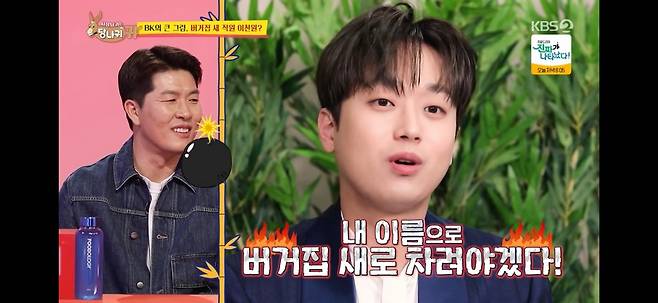 이에 이찬원은 "그럼 경쟁자가 되는데 괜찮으시겠냐"고 물었다. 그러자 김병헌은 "내 밑으로 들어오라"고 영입을 제안해 웃음을 자아냈다. 이에 스페셜 MC 차태현은 "청담동에 찬원이가 가게 내면 BK 바로 망하겠다"고 너스레를 떨었다.
