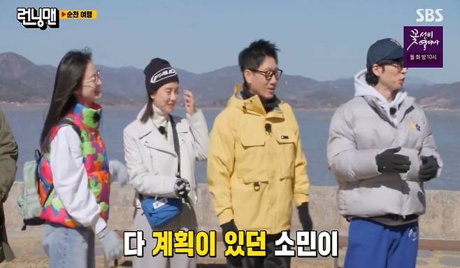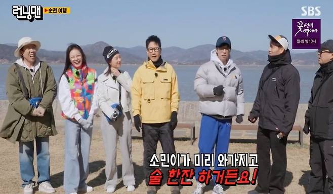 순천에서 진행된 이날 녹화에서 유재석은 “전소민이 어제부터 순천에 왔다고 한다. 원래 연출진이 몇 명 내려오면 소민이가 미리 와서 술 한 잔을 하는데 어제는 아무도 없어서 당황했다고 한다”고 폭로, 웃음을 자아냈다.