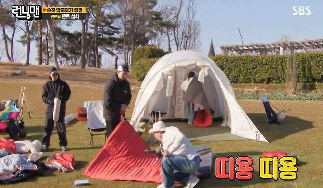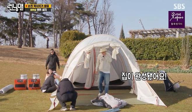 그 말대로 이날 런닝맨들은 캠핑의 기본인 텐트 설치부터 어려움을 겪었다. 곳곳에서 터져 나온 한탄에 하하는 “우리 서로 짜증내지 말자”며 멤버들을 다독였다.