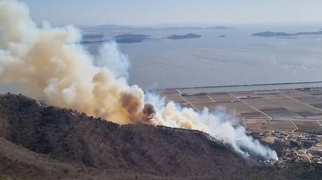 산림 당국이 해가 질 때까지 인천 강화도 마니산 산불이 잡히지 않자 야간 진화 작업 체제로 전환했습니다.