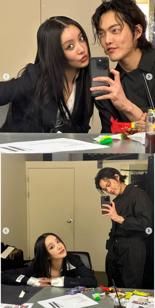이는 앞서 공개된 화보 촬영 중 쉬는 시간으로 보인다. 김건우가 적은 '퍼스트 클래스 태워준다고 혜정아'는 최근 화제몰이 중인 넷플릭스 오리지널 드라마 '더 글로리'에서 극중 손명오(김건우 분)와 최혜정(차주영 분)의 러브라인을 뜻하는 대사다.