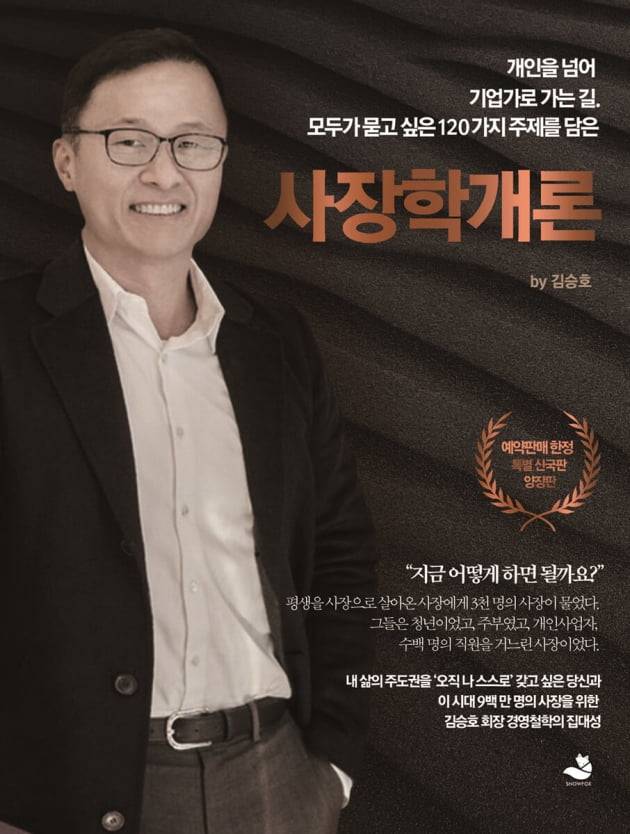 이 책은 ‘사장을 가르치는 사장’으로 알려진 ‘돈의 속성’의 저자 김승호 짐킴홀딩스 회장의 신간이다. 평생 사장으로 살아 온 그의 경영 철학 모두를 10여 년에 걸쳐 정리해 온 그는 이 책을 통해 120가지 주제로 그 내용을 모두 담아 완성했다. 지난 7년간 3000명의 사장 제자들을 만나 사장학 수업을 진행하며 현실에서 겪는 다양한 문제와 관련해 사장들이 묻는 공통적인 어려움을 확인했고 그 문제들을 목차로 구성해 방향을 제시했다. 책은 6가지 각각의 경우의 대상자들이 더 집중해 볼 수 있는 장으로 구성됐다. 국내 25%, 900만 명에 이르는 사장 모두가 회사의 규모에 따라 상황에 따라 각각 펼쳐 읽어 볼 수 있도록 집필했다.
