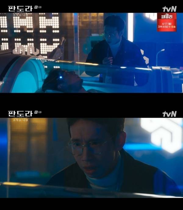 3월 26일 방송된 tvN 토일드라마 ‘판도라 조작된 낙원’ 6회(극본 현지민/연출 최영훈)에서 구성찬(봉태규 분)는 홀로 혼수상태 장교진(홍우진 분)을 깨웠다.