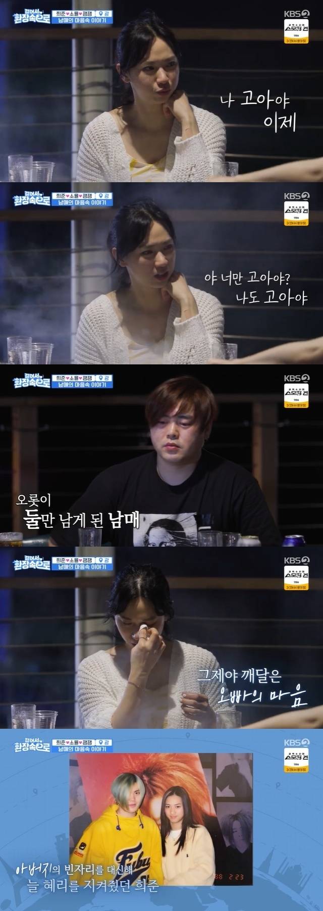 문혜리는 "이제 나도 성인이고 아이들도 있고 하니까 같이 마음을 나누고 싶다. 나한테 좀 기댔으면 좋겠다"며 뒤늦게나마 이젠 오빠에게 엄마의 역할을 해주고 싶은 마음을 드러냈다. 문희준과 문혜리의 애틋한 남매애가 시청자들에게 뭉클함을 선사했다. (사진=KBS 2TV '걸어서 환장 속으로' 캡처)