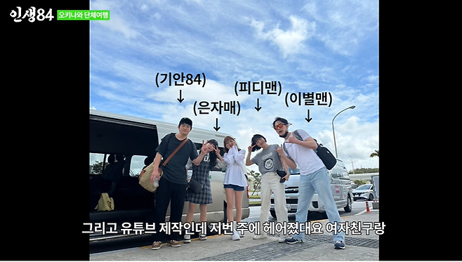 이날 기안84는 “일본 오키나와에 놀러 왔다. 저랑, 저희 직원 은자매 2인조, 유튜브 피디맨, 유튜브 제작자인데 지난주에 여자친구와 헤어져서 이별맨 총 5명이 왔다. 물론 돈은 내가 다 냈다”며 소개했다.