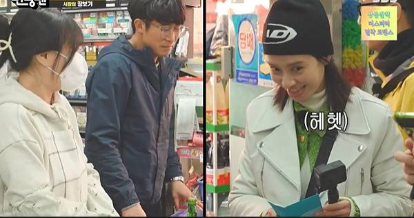 갑자기 송지효는 맥주를 보더니 "너가 날 꼬시면 어떡하냐"며 결국 맥주를 골랐다. 뒤늦게 알게된 지석진과 유재석이 "맥주 샀냐"고 묻자 송지효는 "누가요?"라며 발뺌했다. 마트 직원은 "무알코올 맥주다"고 하자