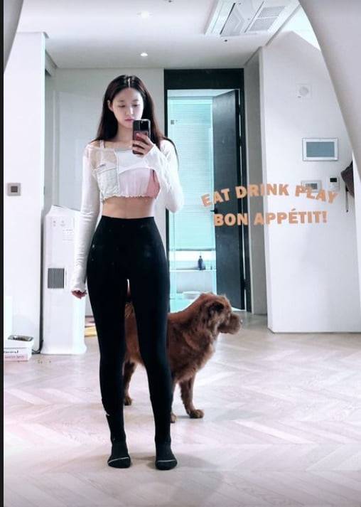 사진 속 설현은 자택 거실로 보이는 곳에서 몸매가 고스란히 드러나는 섹시한 배꼽티에 레깅스를 입고 거울을 이용해 셀카를 찍고 있다.