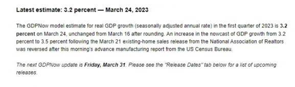 그런데 올해 1분기 성장률은 3%대 안팎으로 전망되고 있습니다. 애틀랜타 연방은행의 국내총생산(GDP) 산출 프로그램인 'GDP나우'의 1분기 성장률 전망치는 3.2%입니다. 3.2%가 0.4%로 떨어지려면 2분기 이후나 늦어도 하반기엔 심한 경기하강이나 침체가 올 수밖에 없습니다.