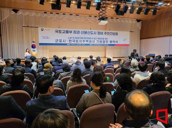 원희룡 장관이 지난 26일 군포문화예술회관에서 군포시 주민들과 만났다. 1기 신도시 주거 실태를 확인하고 주민 목소리를 듣기 위한 자리로, 지난 21일 고양시 일산신도시 방문에 이어 두 번째다.