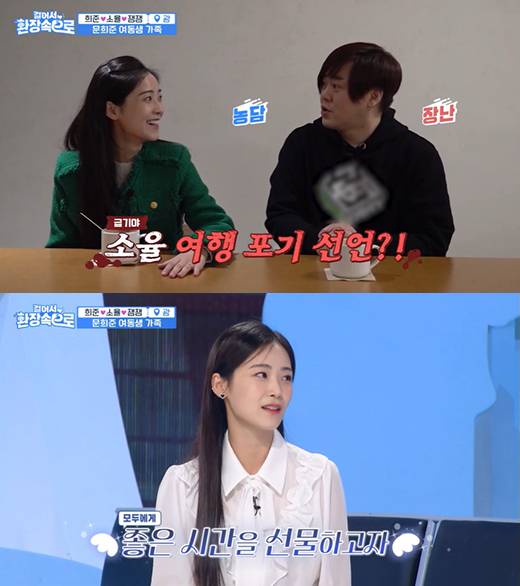 소율은 자신보다 10살 많은 시누이 문혜리와의 동반 여행에 대해 "그냥 나 빼고 갔다 오라"며 너스레를 떨었다.