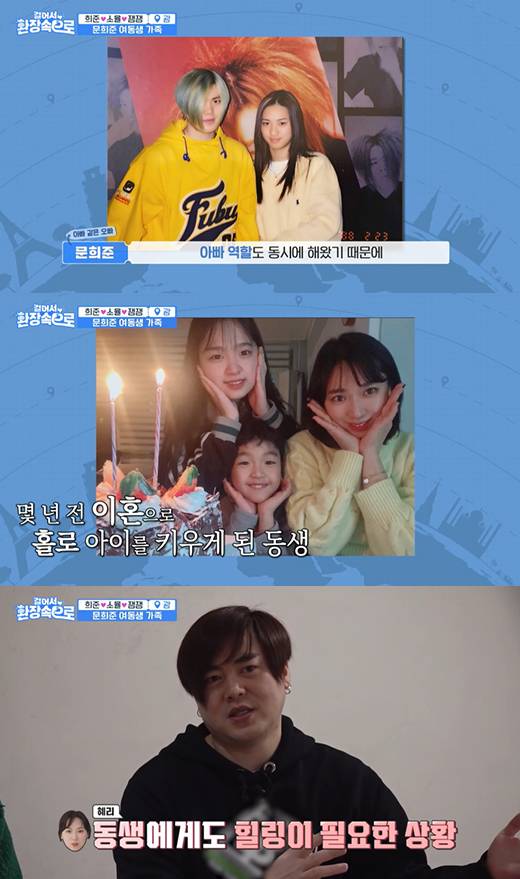 이날 문희준은 문혜리에 대해 "제가 19살에 데뷔했을 때부터 지금까지 아빠 역할도 동시에 해왔기 때문에 조금 더 남다른 끈끈함이 있는 여동생"이라며 "몇 년 전부터 혼자 아이 둘을 케어해야 되는 상황이 됐다. 일을 하고 집을 가면 육아 전쟁이다. 동생도 힐링이 필요한 상황"이라면서 조심스럽게 동생의 이혼을 언급했다.