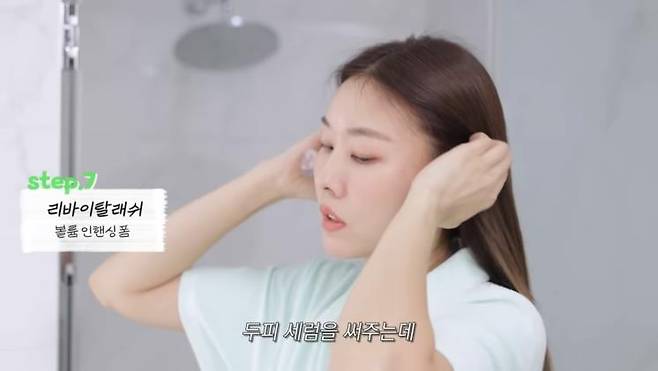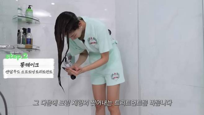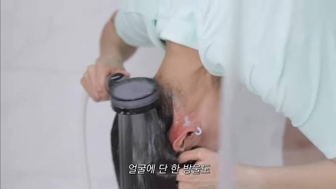 나는 샴푸를 할 때 어떤 자세로 할까? 한혜진은 허리를 숙이고 린스까지 마무리한다. 이유는 얼굴과 등에 샴푸가 닿아 트러블이 생기는 것을 예방하기 위해서라고. 트리트먼트를 헹궈낼 때는 두피까지 다시 헹궈준다는 느낌으로 꼼꼼히 씻어낸다.