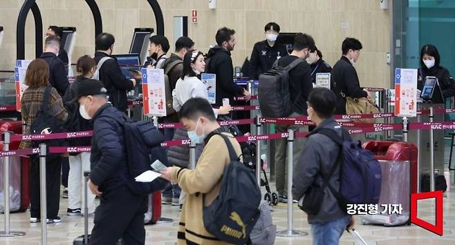 코로나19로 중단됐던 한-중 노선 운항이 재개된 가운데 27일 김포공항 국제선에서 북경·상해 노선을 이용하는 승객들이 탑승장으로 들어서고 있다.