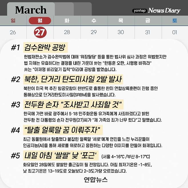 [저녁잇슈] 2023년 3월 27일 월요일
