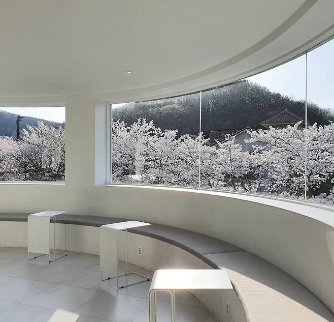 갤러리 같은 공간에서 벚꽃이라는 전시를 감상하고 싶다면 카페 내재로 향하자. 동그란 유선형 통창에 벚꽃뷰, 금강뷰를 함께 볼 수 있어 자연과 함께 하는 주말을 만끽할 수 있다. 다른 곳들보다 벚꽃이 늦게 핀다고 하니 아직 벚꽃을 제대로 보지 못한 사람이라면 공주로 향하도록.