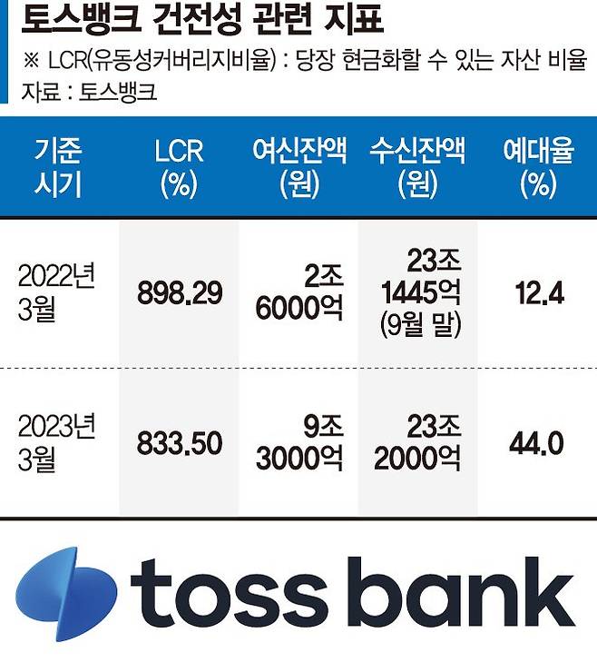 이에 토스뱅크는 이날 보도자료를 통해 유동성커버리지비율(LCR)이 833.5%에 달한다며 은행 평균(100%)에 비해 크게 높다고 강조했다.