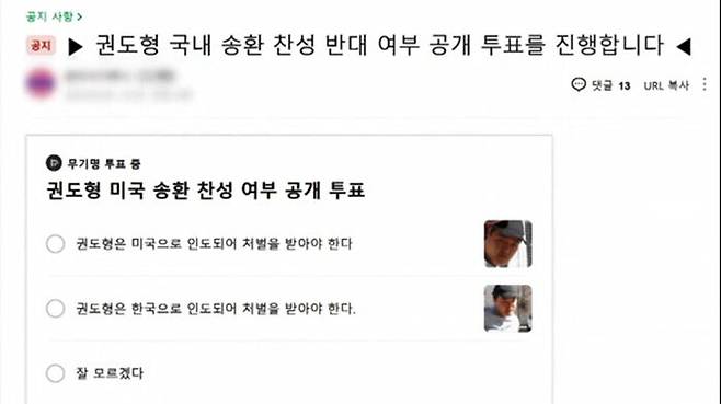 피해자 인터넷 커뮤니티에서는 투표까지 진행 중인데, 10명 가운데 7명 정도는 미국 송환에 찬성하고 있습니다.