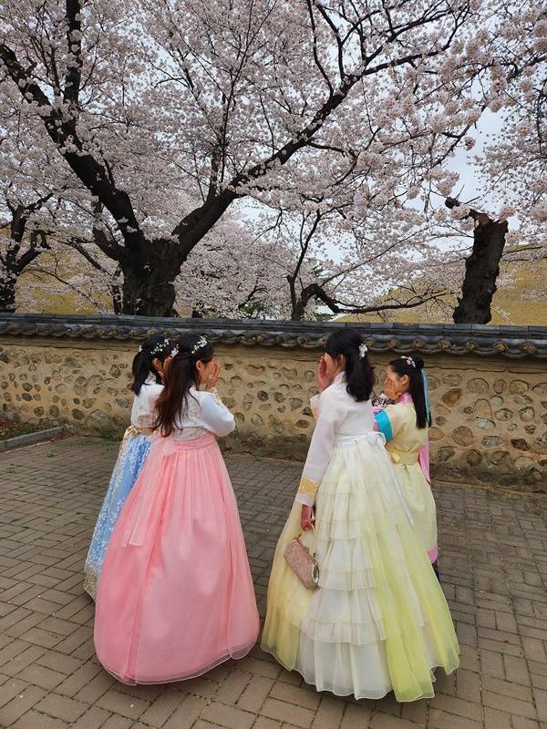 기자는 지난 25일 오전, 우리의 전통의상인 한복스케치를 위해 경주 대릉원을 먼저 찾았다. 대릉원은 화사한 연분홍 벚꽃과 새하얀 모습의 목련이 아직도 아름다운 모습을 하고 있어 국내외 관광객이 봄꽃 여행지로 많이 찾는다.