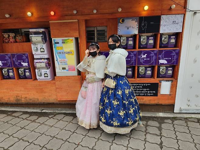 | ▲ 경주 황리단길 한복 대여점 앞에서 사진 촬영 중인 방문객 모습(2023.3.25) |