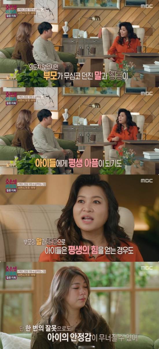 27일 방송된 MBC '오은영 리포트-결혼 지옥'(이하 '결혼지옥')에서는 오은영이 사면시가 부부의 다툼이 아이에게 가정 폭력이 된다고 강조한 장면이 전파를 탔다.