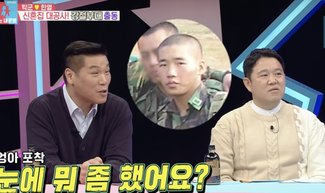 이때, 누군가 도착했다. 알고보니 특전사 동기들 3명이었다. 이어 20대 스무살 시절 특전사 단체 사진을 공개,하지만 아무도 박군을 찾지(?) 못했다. 서장훈은 “박군이 눈에 뭐 좀 했나”며 기습질문, 박군은 “쌍꺼풀 수술했다”고 고백해 눈길을 끌었다.